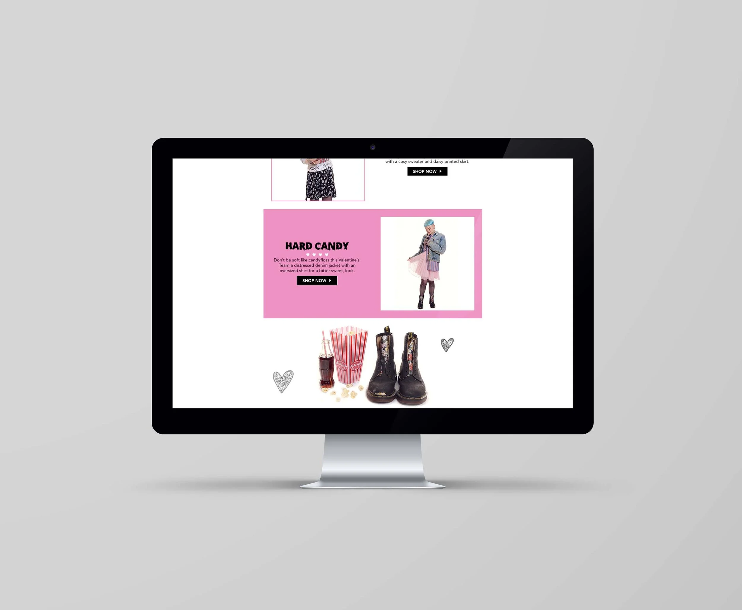 Newsletters at Beyond Retro were sent out a couple of times a week, featuring vintage and retro clothing based around a particular story or theme. For Valentine’s Day we wanted to push 90s grunge clothing so went for an Anti-Valentines message, adding a hint of femininity to the styling.