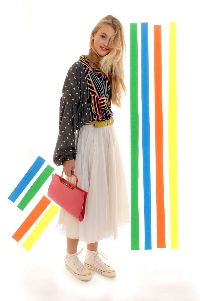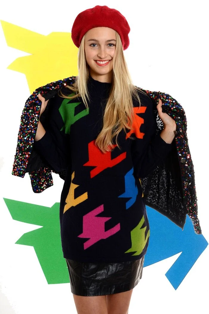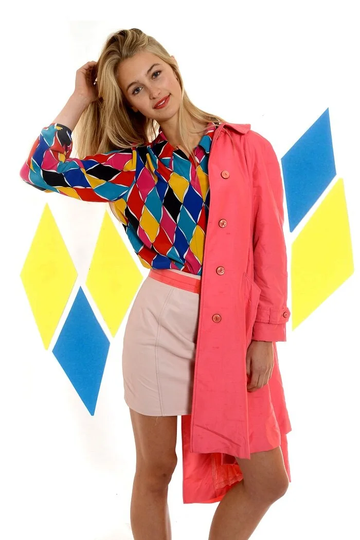 Here we wanted to sell 80s clothing, so I incorporated motifs from this era through a collage effect including clashing colours, geometric shapes and bold structures.