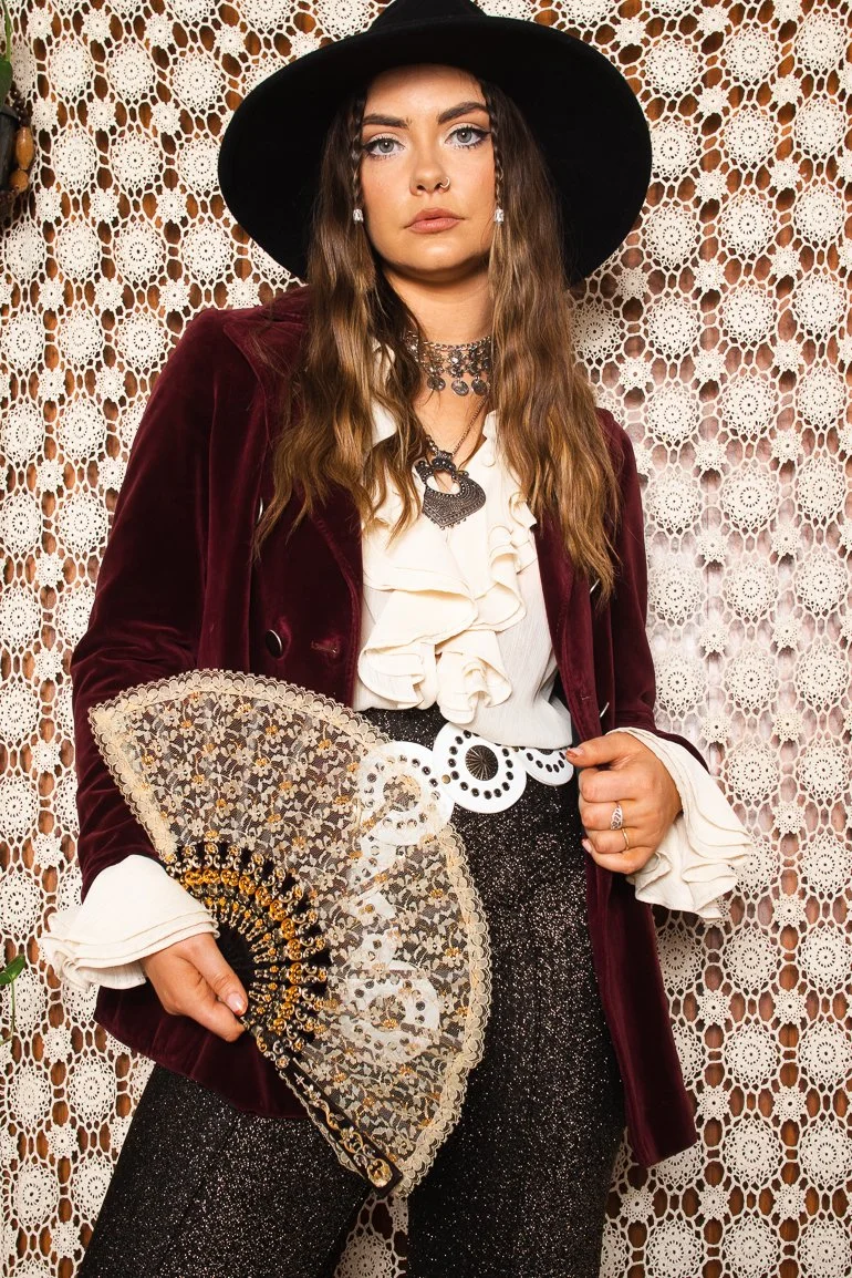 Step inside a wardrobe inspired by Daisy Jones and the Six. Flow through long vintage skirts, lacy layers and seductive sleeves. Everything needed to achieve the vibes of a vivacious leading lady.